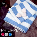 真っ白なリネンに3色のストライプ。白ではなく真っ白にこだわったフィリップのリネンシリーズ。ナチュラルカラーもいいけどタオル類の白(真っ白)もいいですよ。