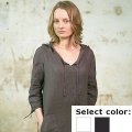 LinenMe社のリネン生地 LIN040を使用したリネンのフード付きブラウス。特殊なプレウォッシュ加工(リネンのお洗濯による縮みや色落ちを防ぐため特殊なドラムに入れ洗い加工を施すこと)により、ふんわりと柔らかいリネン生地に仕上がっています。リネン生地 LIN040はプレウォッシュ加工後の生地の縮み、それによる生地の厚みやしなりを計算して織られた極上のリネン生地です。是非直接肌に着てリネンの品質の良さを実感してください。